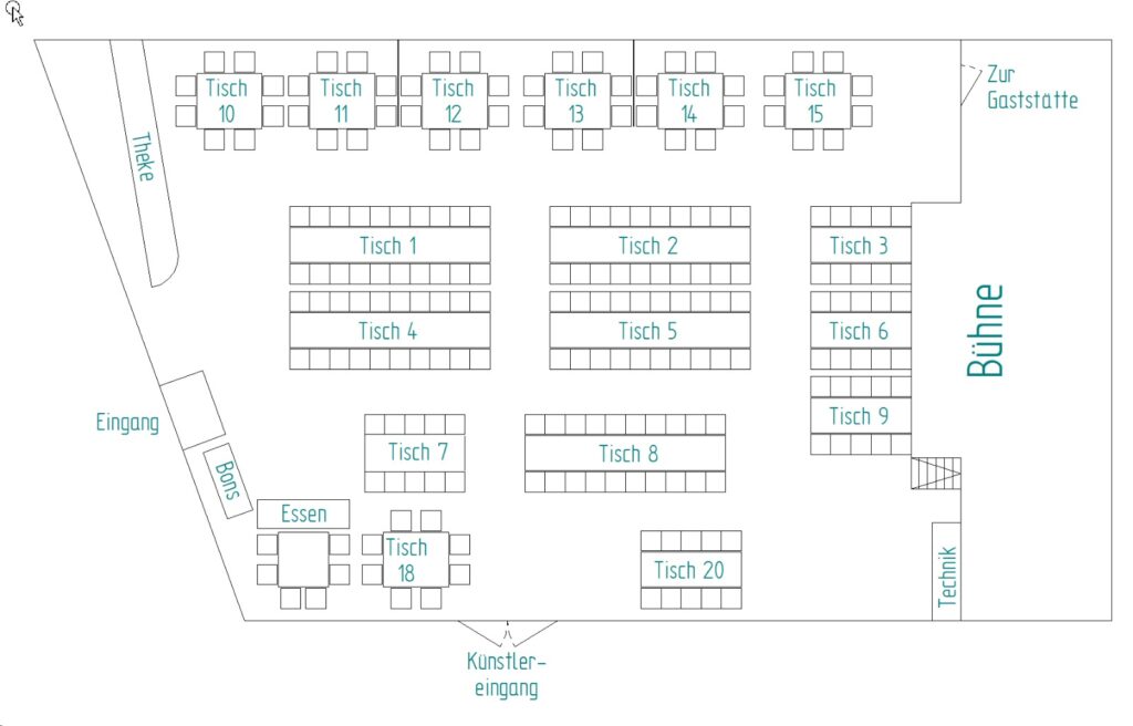| Tischnummer | Tisch 1, Tisch 2, Tisch 3, Tisch 4, Tisch 5, Tisch 6, Tisch 7, Tisch 8, Tisch 9, Tisch 10, Tisch 11, Tisch 12, Tisch 13, Tisch 14, Tisch 15, Tisch 17, Tisch 18, Tisch 20, Tisch 21 |